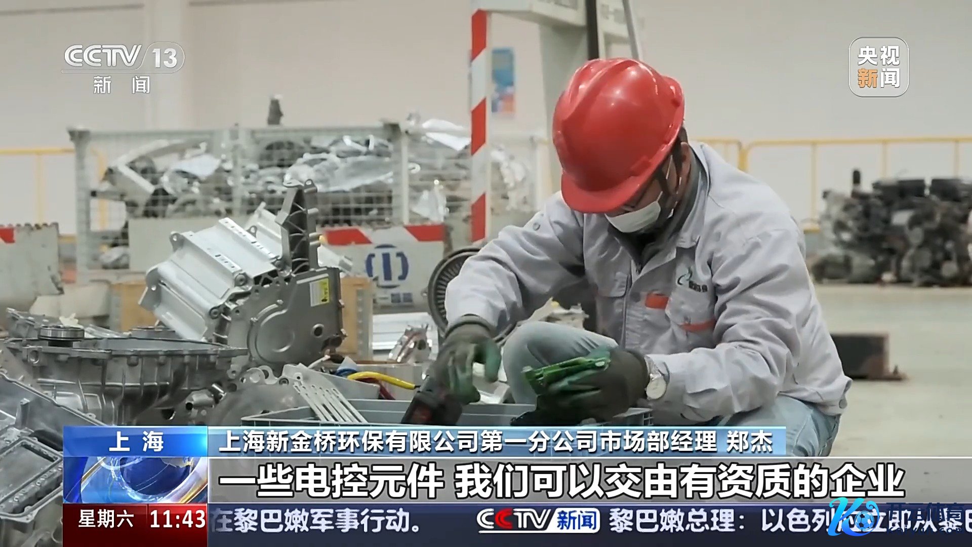 上海新金桥环保有限公司第一分公司商场部司理 郑杰:有一订价值的,比如期间较新的、损坏情况较低的,一些电控元件,咱们不错交由有天禀的企业,进行维修、检测、再蜕变,然后应用到一些对老本比拟敏锐的场景中,进行再欺诈,也具有一定的欺诈价值。