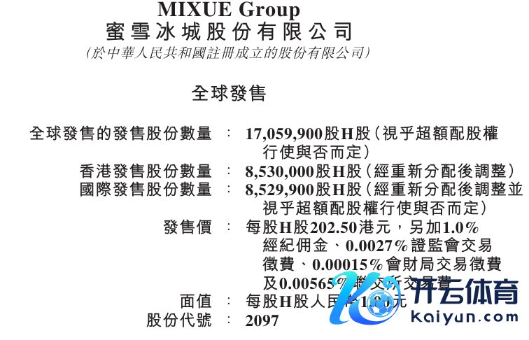 蜜雪集团:IPO最终价钱为202.5港元/股蜜雪集团:IPO最终价钱为202.5港元/股